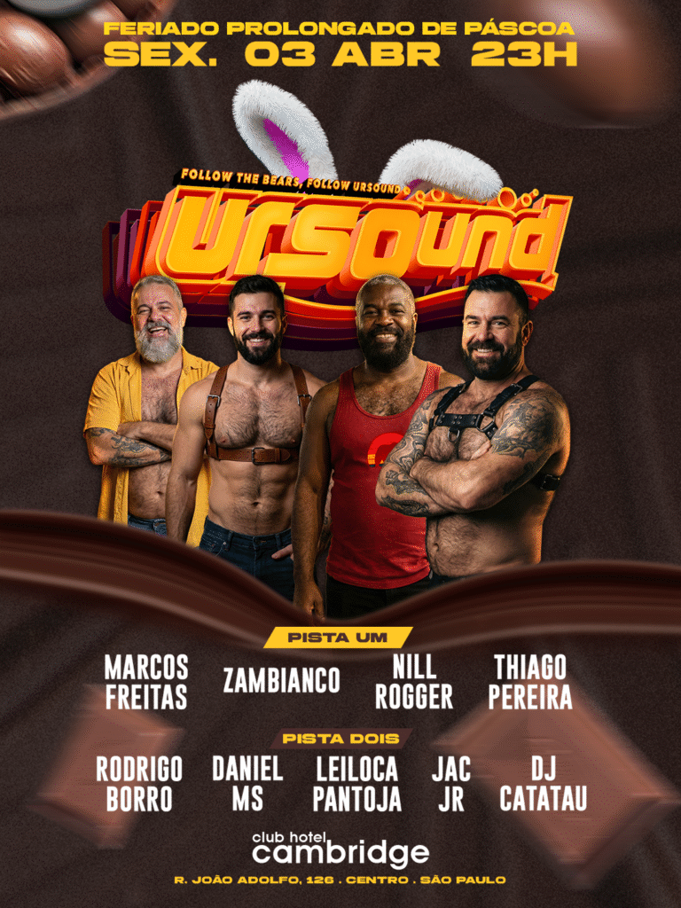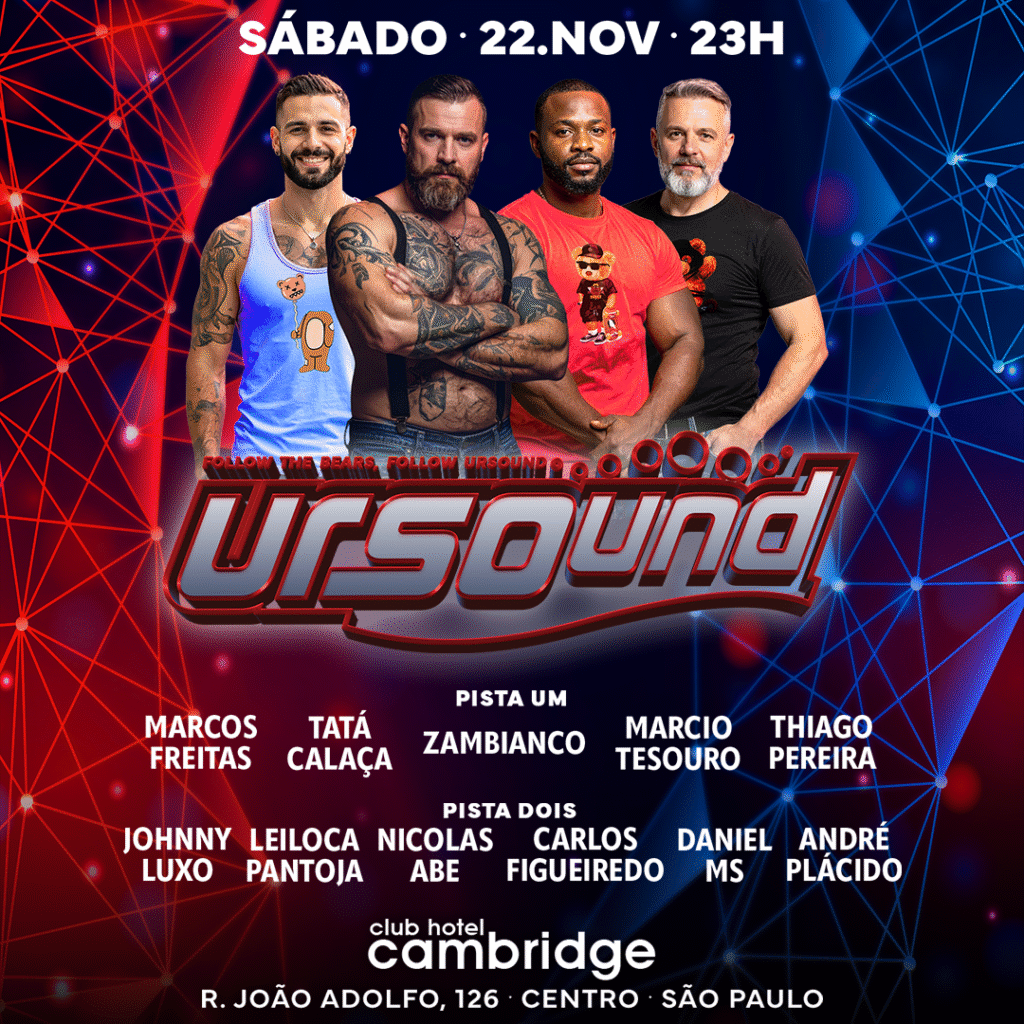 A Festa Ursound é um Espaço para Todos os Tipos de Ursos, Bears, Amigos, Jovens, Maduros, Coroas, Chasers e Admiradores se encontrarem, são vários DJs e o som mais democrático da cidade num ambiente com duas pistas, lounges, mezanino e vários bares!