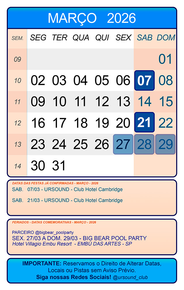 SÁBADO, 21 de MARÇO – 23h – CLUB HOTEL CAMBRIDGE