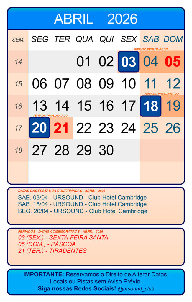 SEXTA, 03 de ABRIL – 23h – CLUB HOTEL CAMBRIDGE