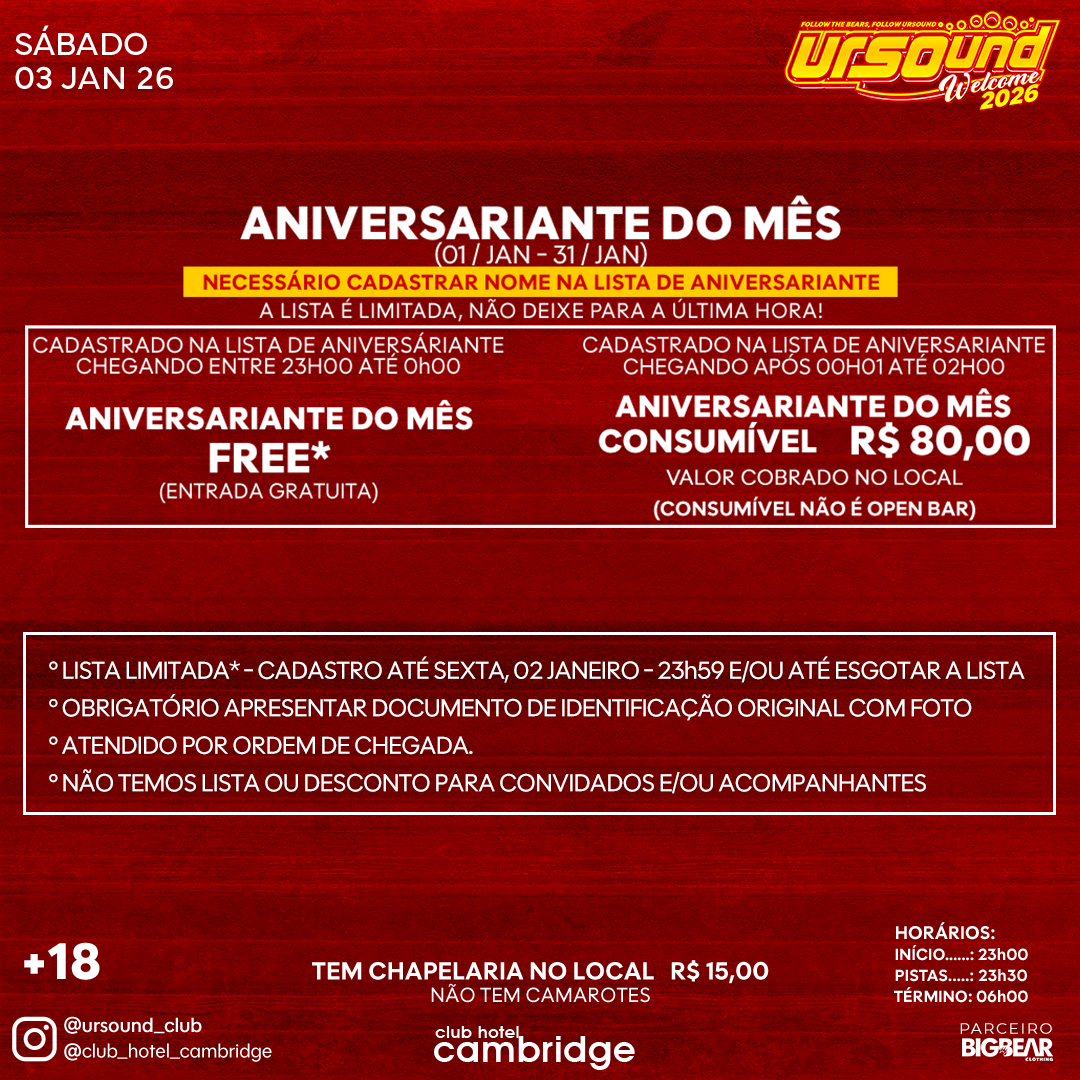 ANIVERSARIANTE DO MÊS – Edições no Club Hotel Cambridge