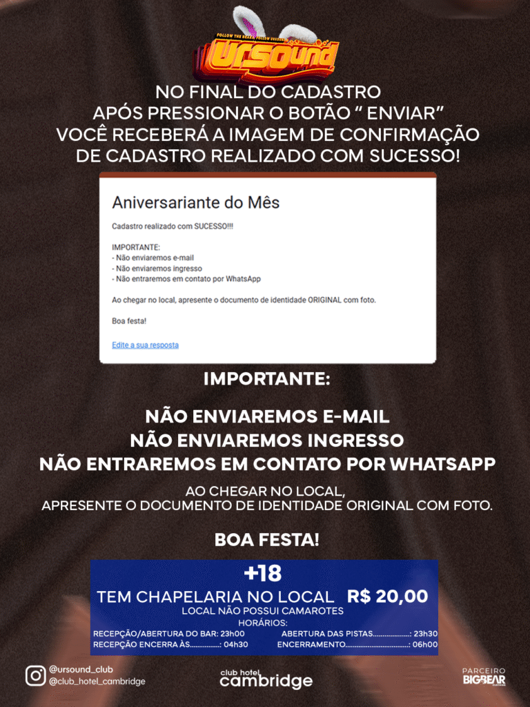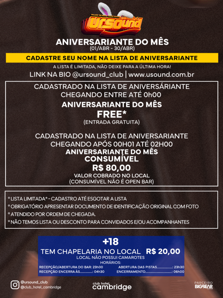 LISTA LIMITADA* – CADASTRO ATÉ QUINTA 02/ABR – 23h59 OU ATÉ ESGOTAR A LISTA