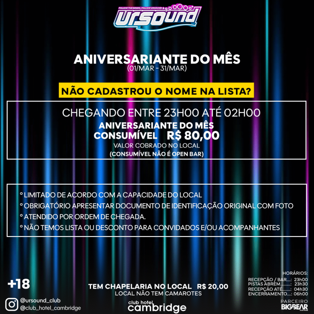 LISTA LIMITADA* – CADASTRO ATÉ SEXTA 06/MAR – 23h59 OU ATÉ ESGOTAR A LISTA