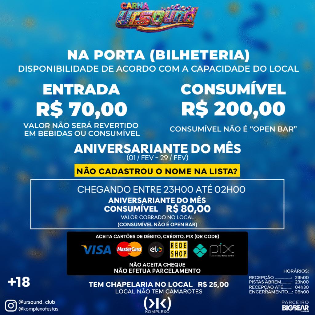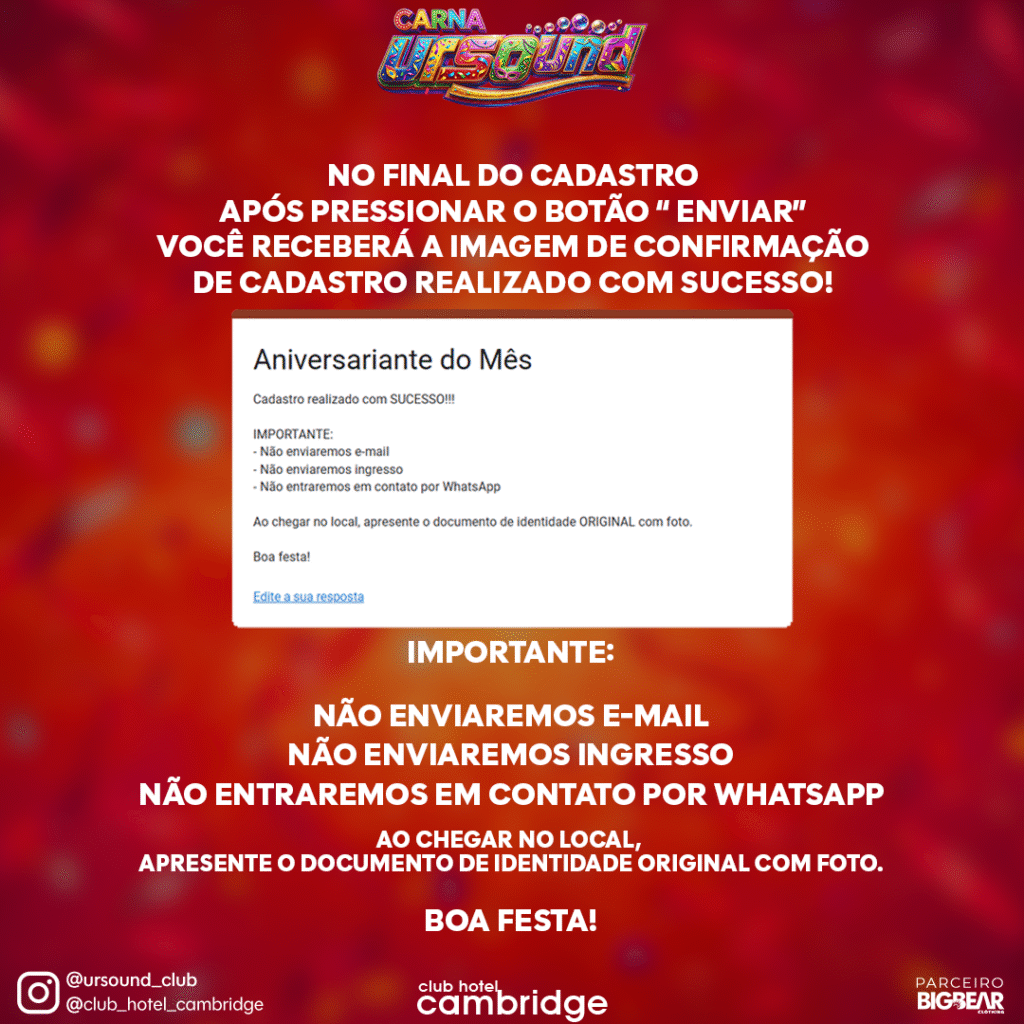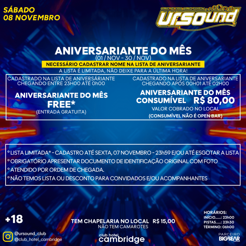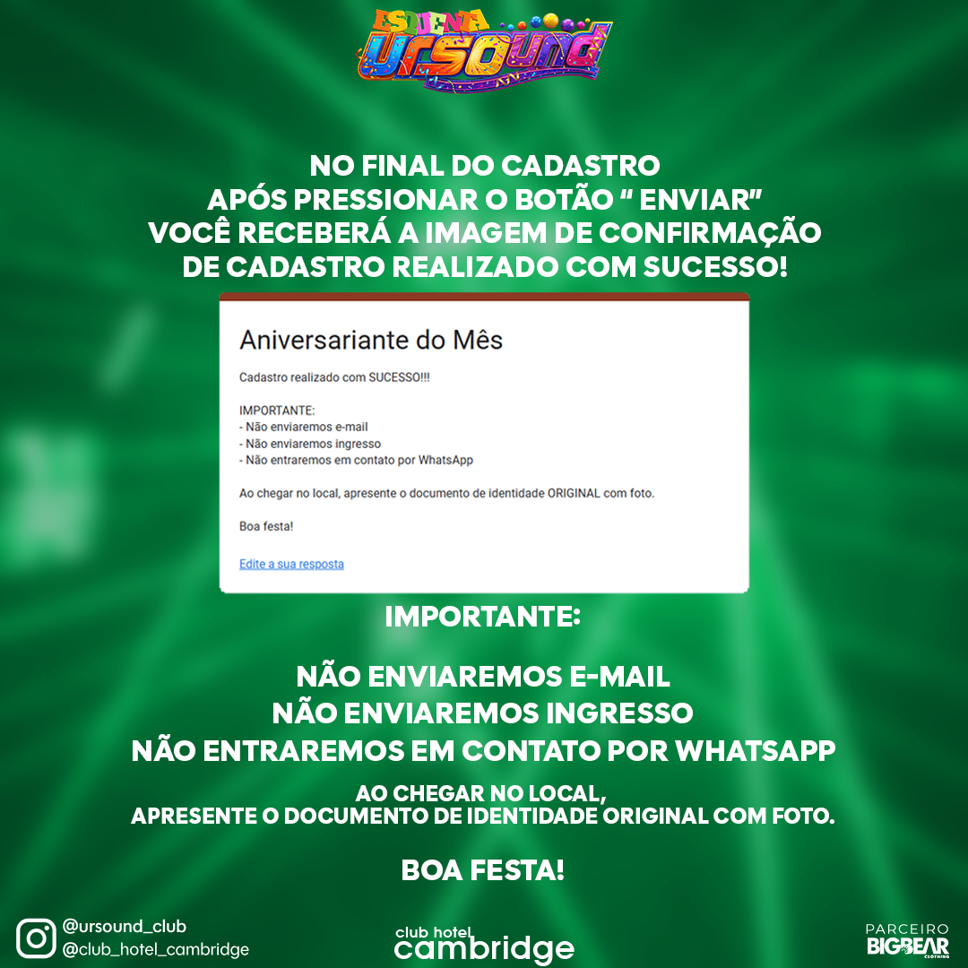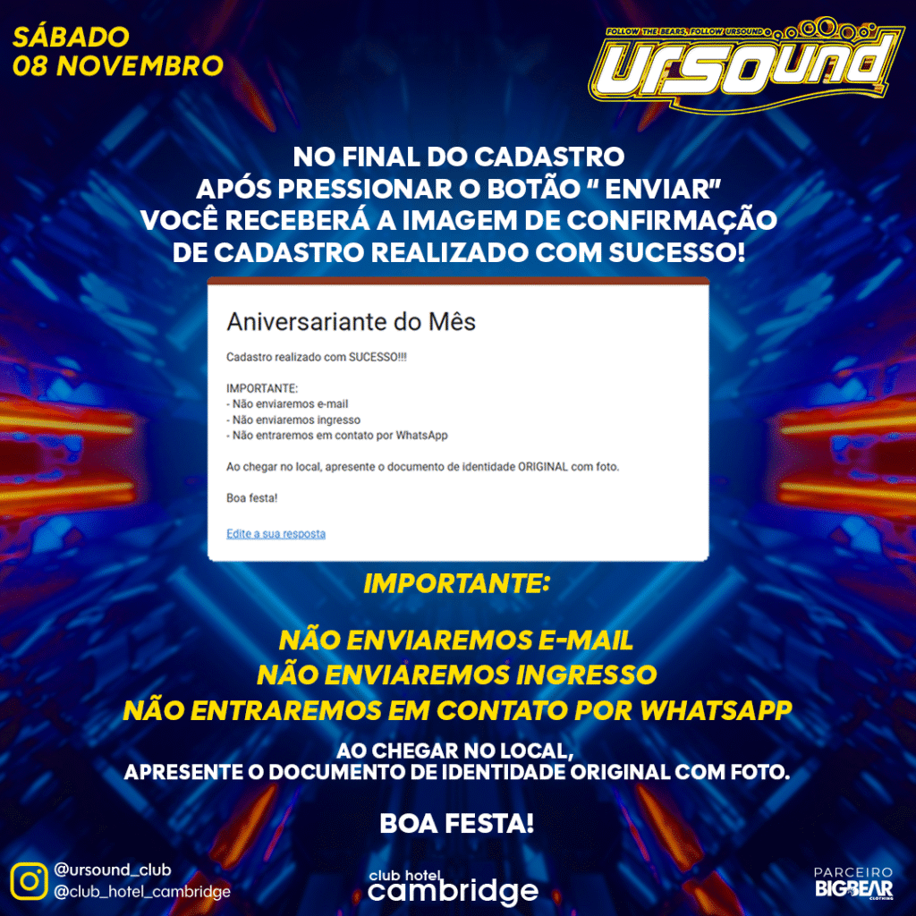SE DESEJAR QUE A SUA FOTO SEJA EXCLUÍDA DO ÁLBUM, ENVIE SUA SOLICITAÇÃO ATRAVÉS DE DM (DIRECT MESSAGE) PARA NOSSO PERFIL NO INSTAGRAM @ursound_club