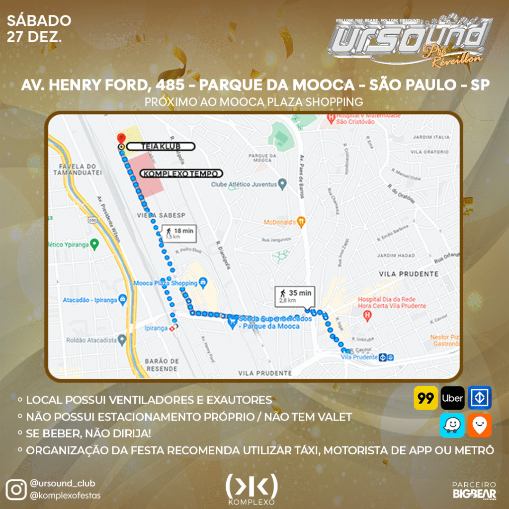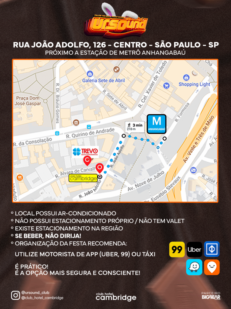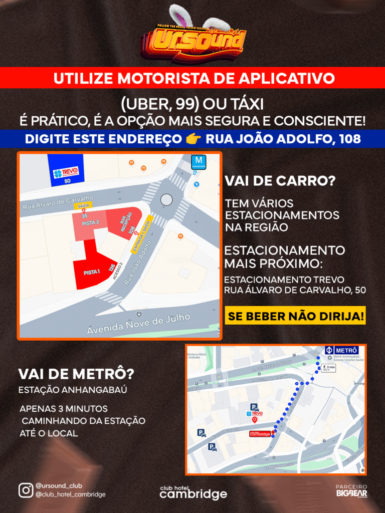 Ao sair da festa aguardem a chegada do Uber, 99 ou motorista por aplicativo dentro dos ambientes e enquanto permanecerem na calçada mantenham o smartphone guardado, assim como suas bolsas e equipamentos.