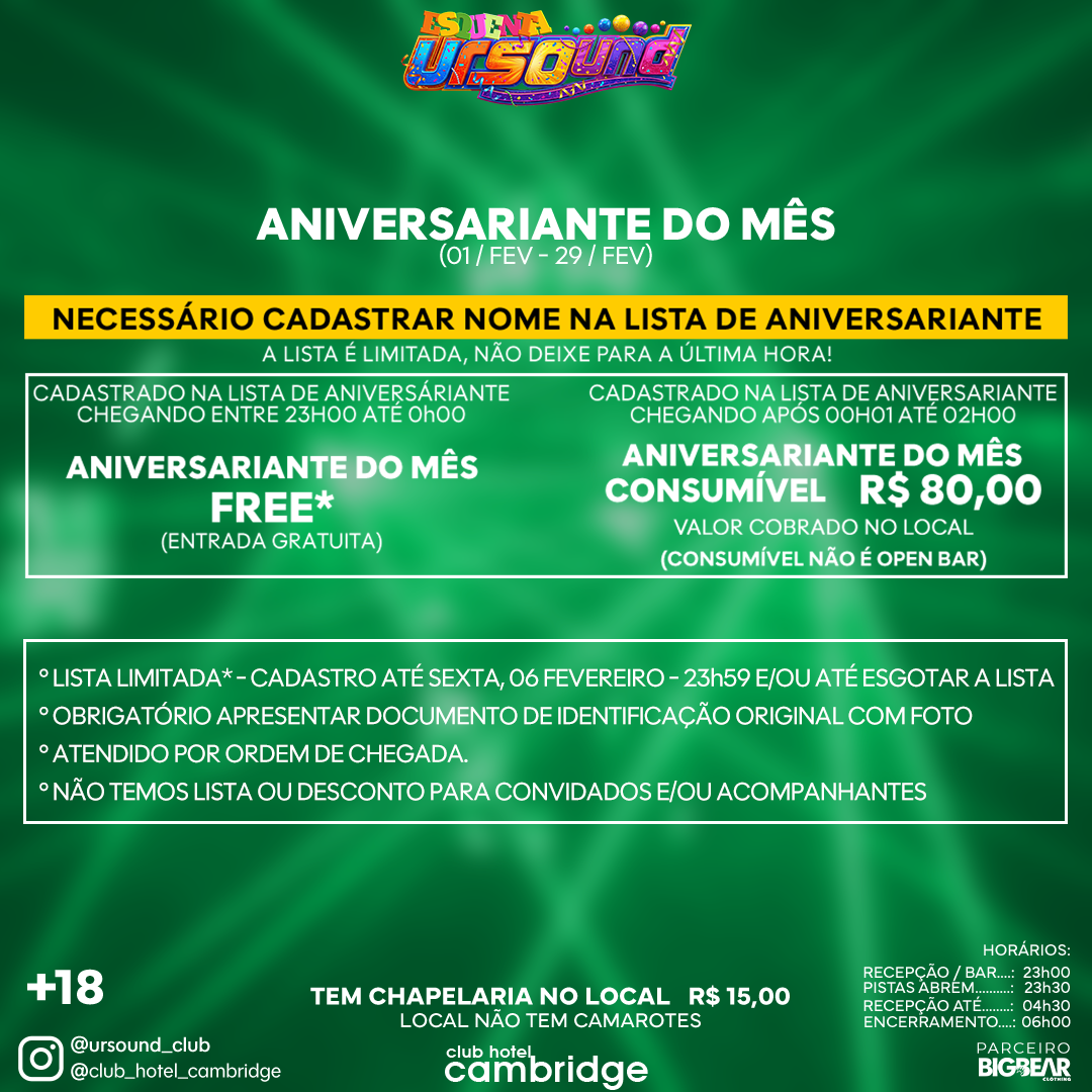 SÁBADO – 03 JANEIRO 2026 – ED493 – URSOUND – CLUB HOTEL CAMBRIDGE – FOTO: FELIPE VEIGA