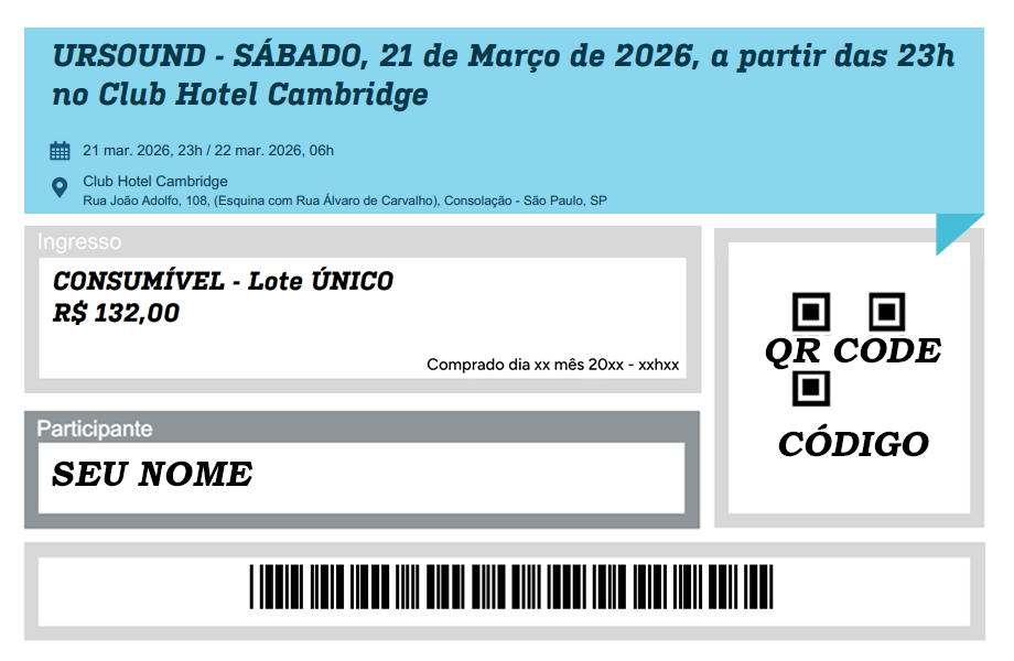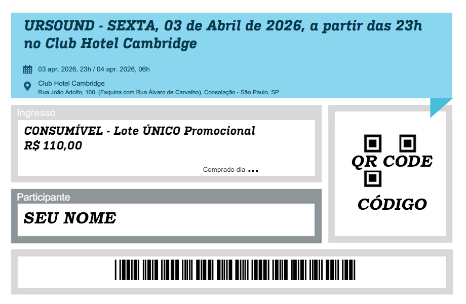 No Club Hotel Cambridge o sistema é “Pós-Pago”. Você receberá a comanda na entrada com o valor pré-pago de R$ 100,00 ou R$ 120,00 ou R$ 150,00 (respectivo ao ingresso adquirido)