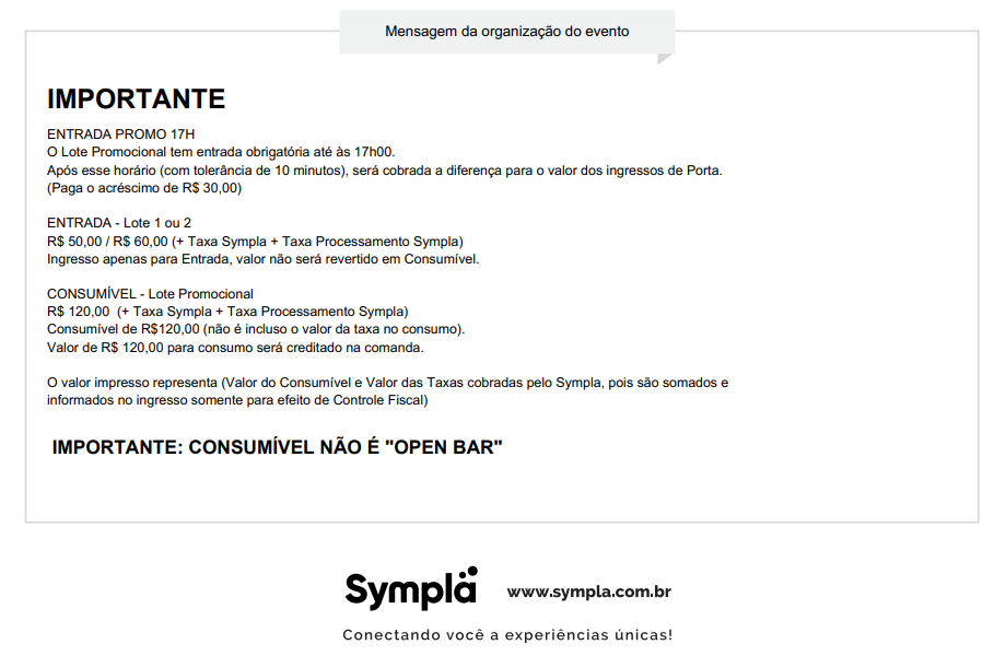 EXPLICAÇÃO SOBRE O VALOR APRESENTADO NO INGRESSO